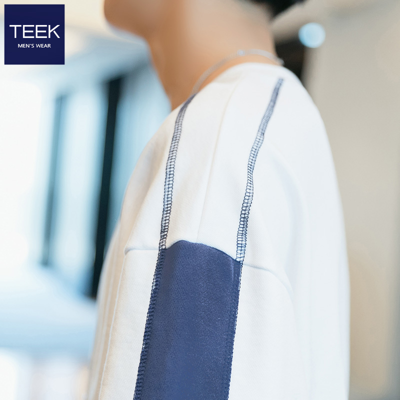 T恤新款 TEEK秋季 拼色青少年长袖 春秋款 上衣服 重磅纯棉中山卫衣男