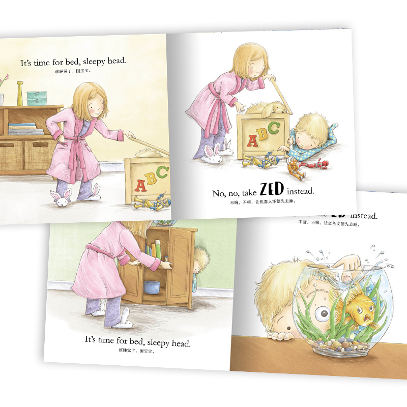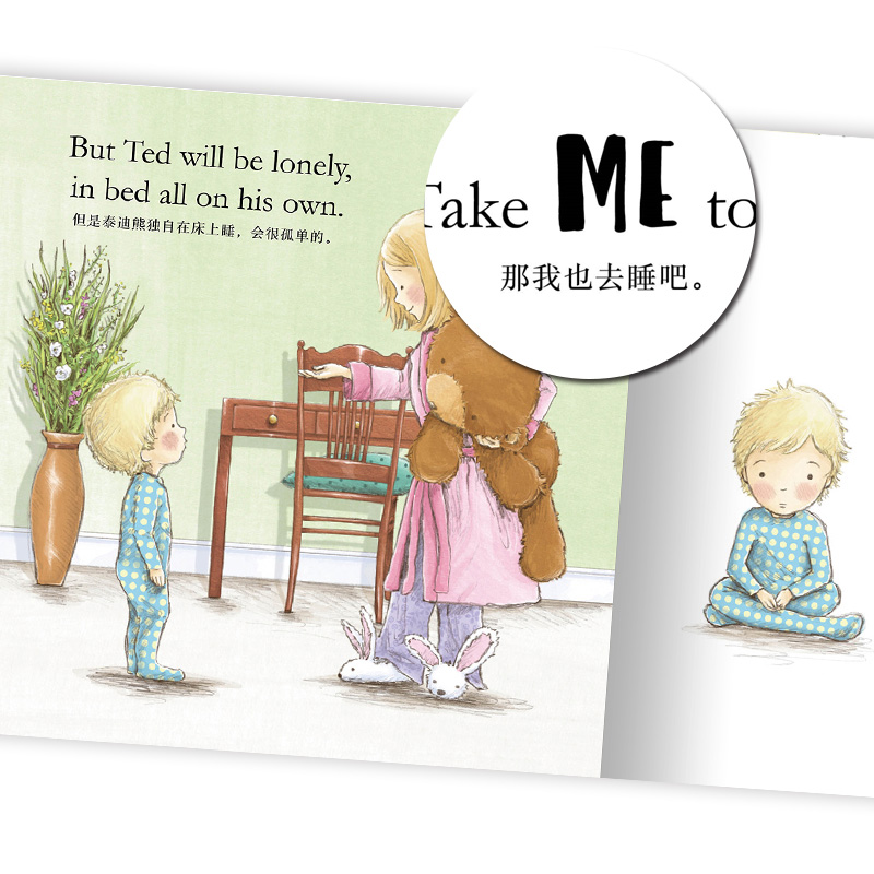 海豚绘本花园幼儿英语早教有声读物儿童英文启蒙图画故事书幼儿园宝宝阅读硬壳0 泰迪替我去睡觉中英双语精装 6岁 点读版