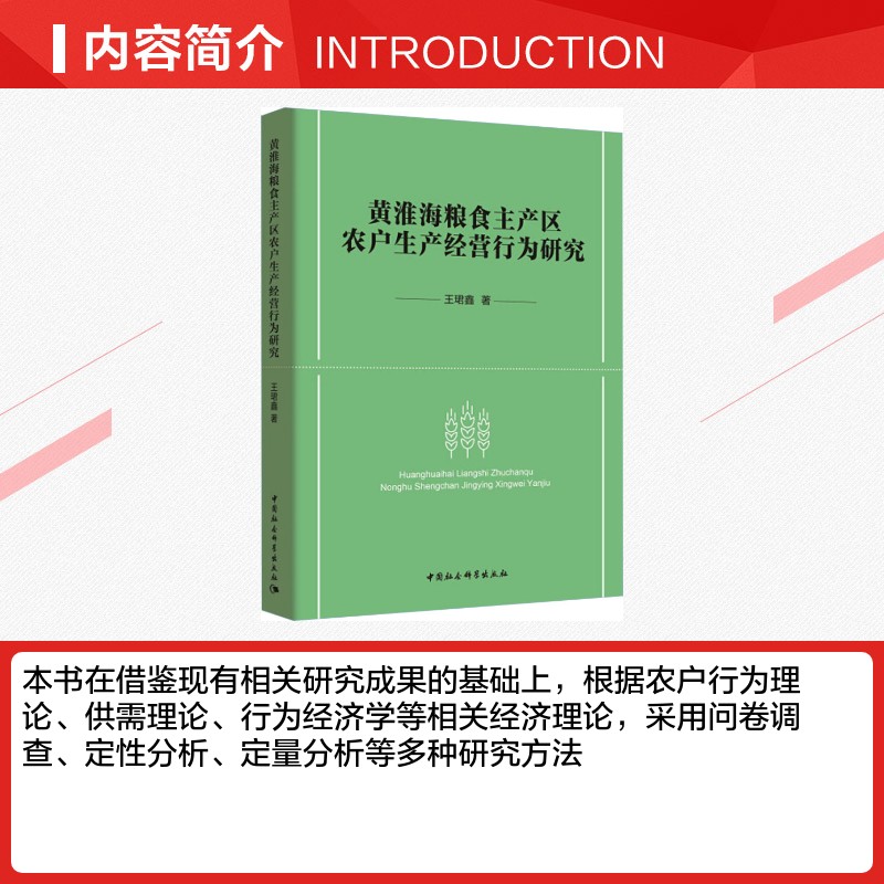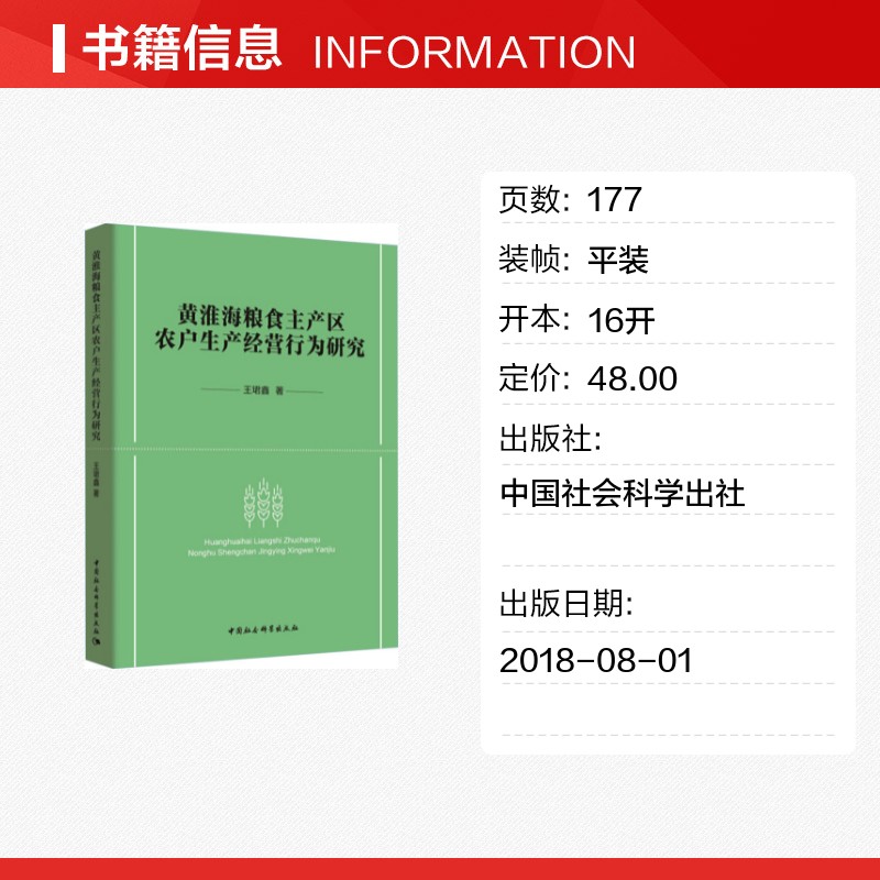 各部门经济经管 著 励志 新华书店正版 中国社会科学出社 黄淮海粮食主产区农户生产经营行为研究 图书籍 王珺鑫