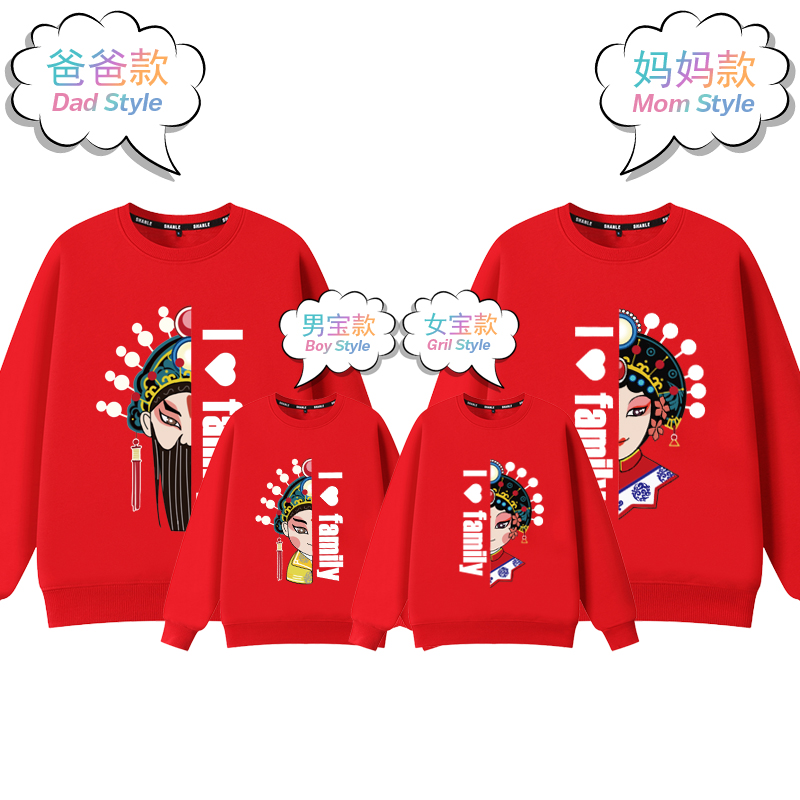 潮洋气红色卫衣一家三口母子母女装 2025新款 全家福卫衣 秋装 亲子装