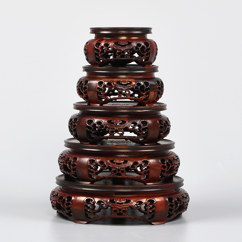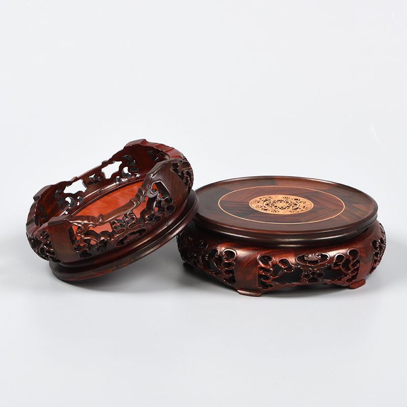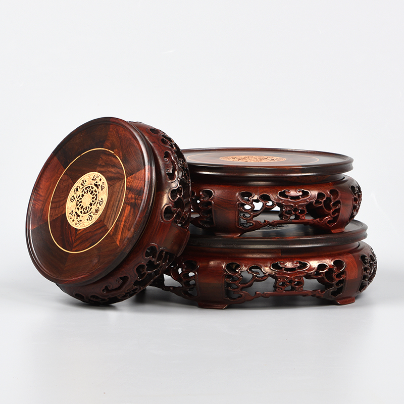 红木大红酸枝佛像木质圆形底座工艺品木雕摆件装 饰品花瓶旋转托架