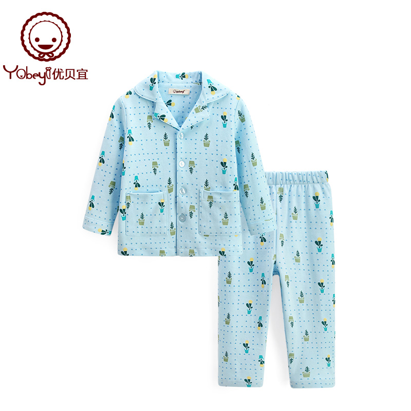 家居服男童纯棉睡衣套装 优贝宜中大童长袖 秋中小童宝宝 清仓
