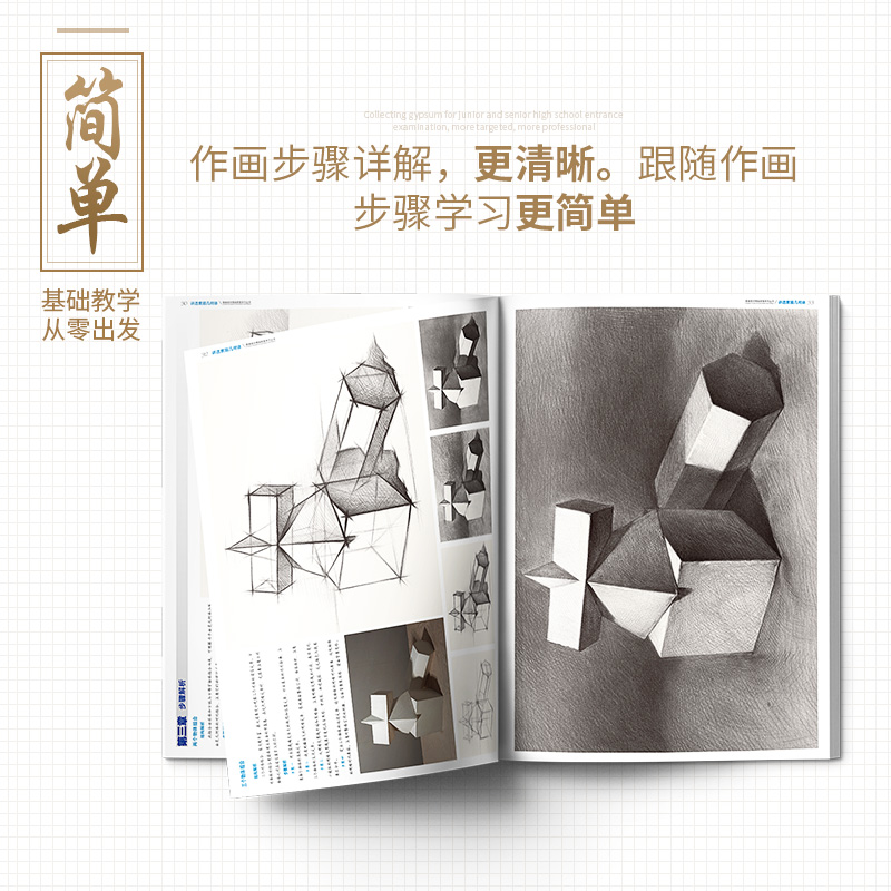 讲透素描几何体基础教程书石膏形体静物组合结构零基础学入门照片本国美临摹范本画册画画绘画初级画儿童高考联考美术教材教学书籍