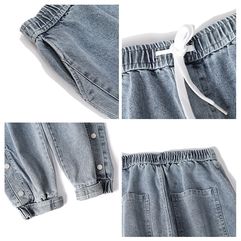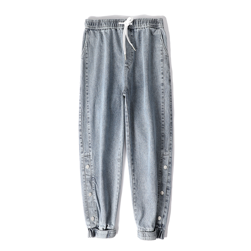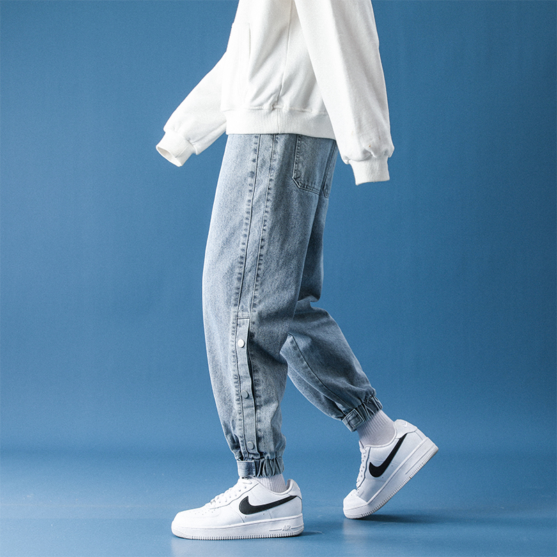 收口ins潮牌百搭老爹裤 潮流直筒宽松排扣长裤 子男韩版 束脚牛仔裤