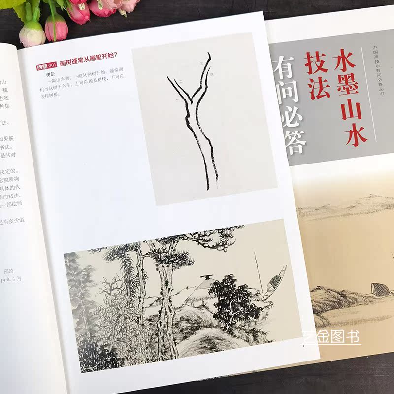 水墨山水技法有问必答 中国画技法邵琦编著山水画入门教材山水画法常识问答基础知识树木云水点景毛笔走势用墨技法上海书画