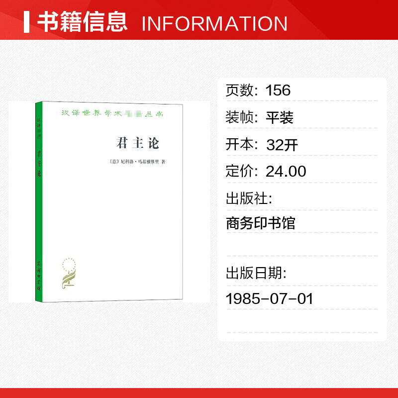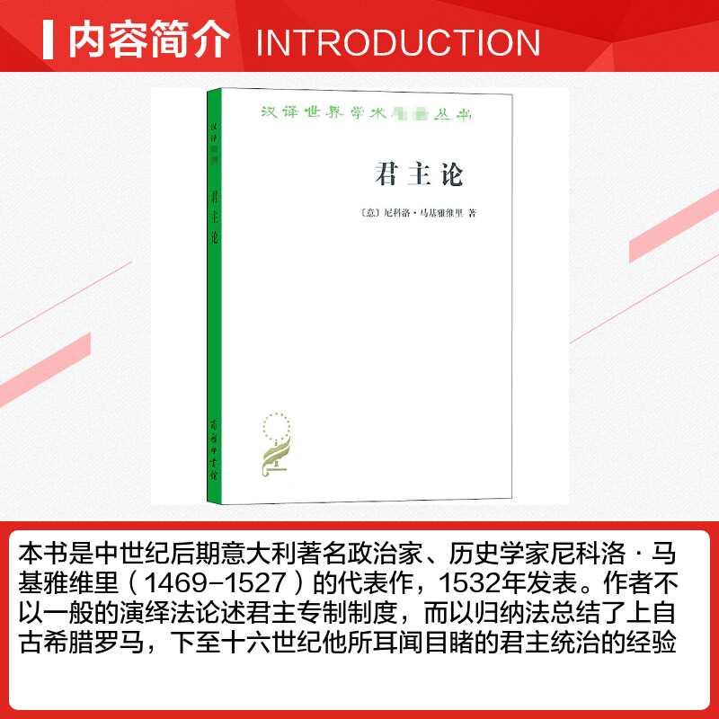 枕边书君主专制理论和君王权术论古典西方政治学经典 拿破仑 思想史 尼科洛马基雅维里影响人类历史著作之一 君主论
