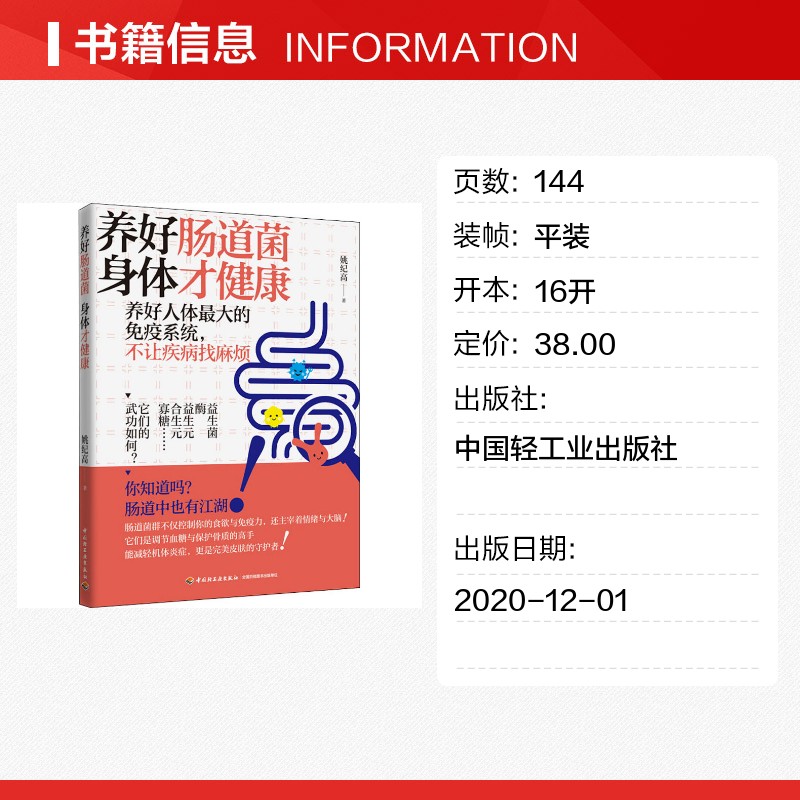 著 饮食营养 中国轻工业出版 身体才健康 社 图书籍 姚纪高 新华书店正版 养好肠道菌 食疗生活