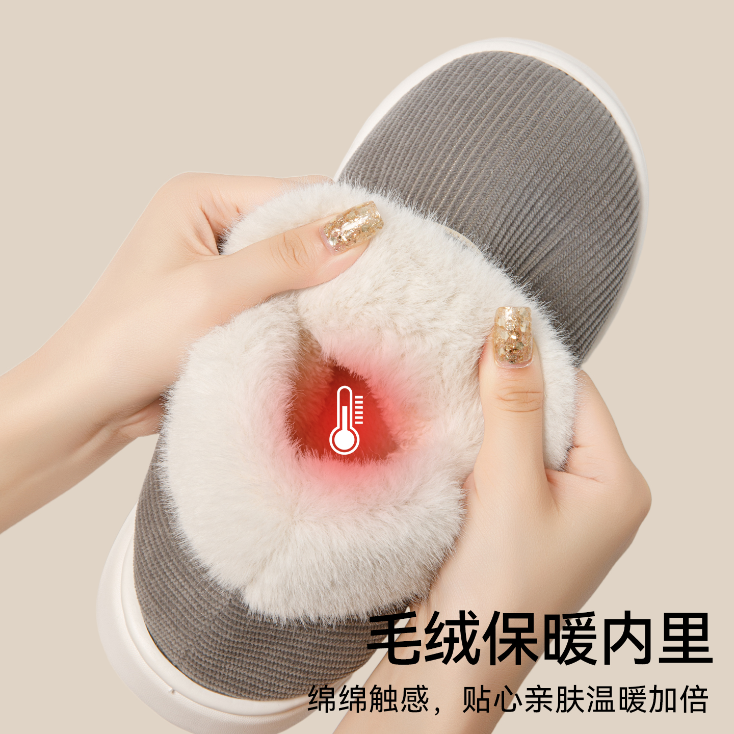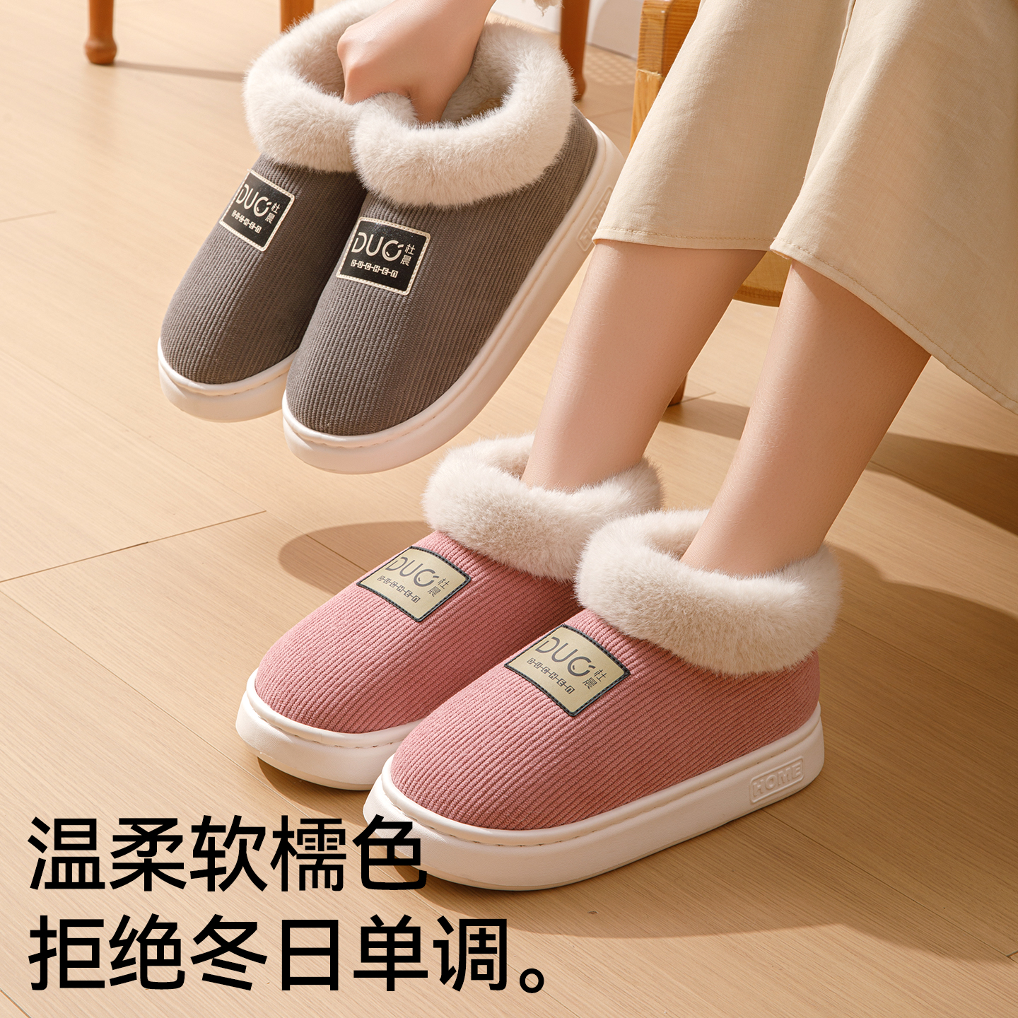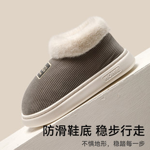 包跟厚底家居室内保暖防滑加绒老人鞋 2025新款 女冬季 中老年棉拖鞋
