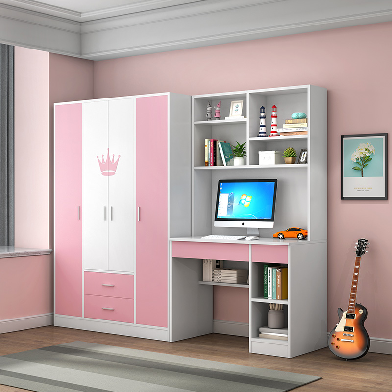 儿童实木衣柜加连带书桌一体组合女童女孩生态板收纳衣橱家用卧室