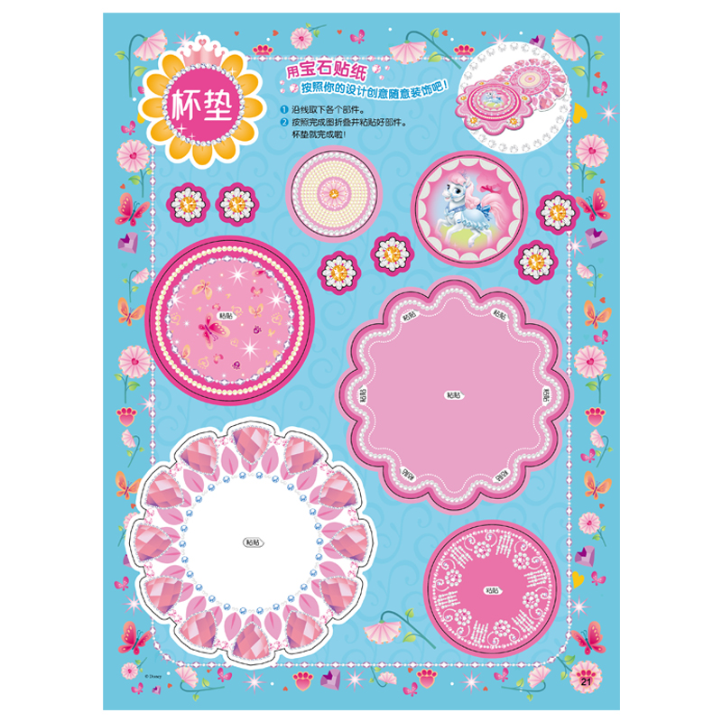 2件32元 迪士尼萌宠亮闪闪创意贴手工书 女孩贴贴书幼儿益智全脑开发思维训练2 4岁 温暖友谊儿童贴纸书小公主换装