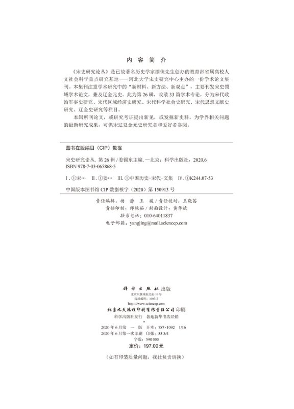 科学出版 全新正版 姜锡东 第26辑 社 宋史研究论丛