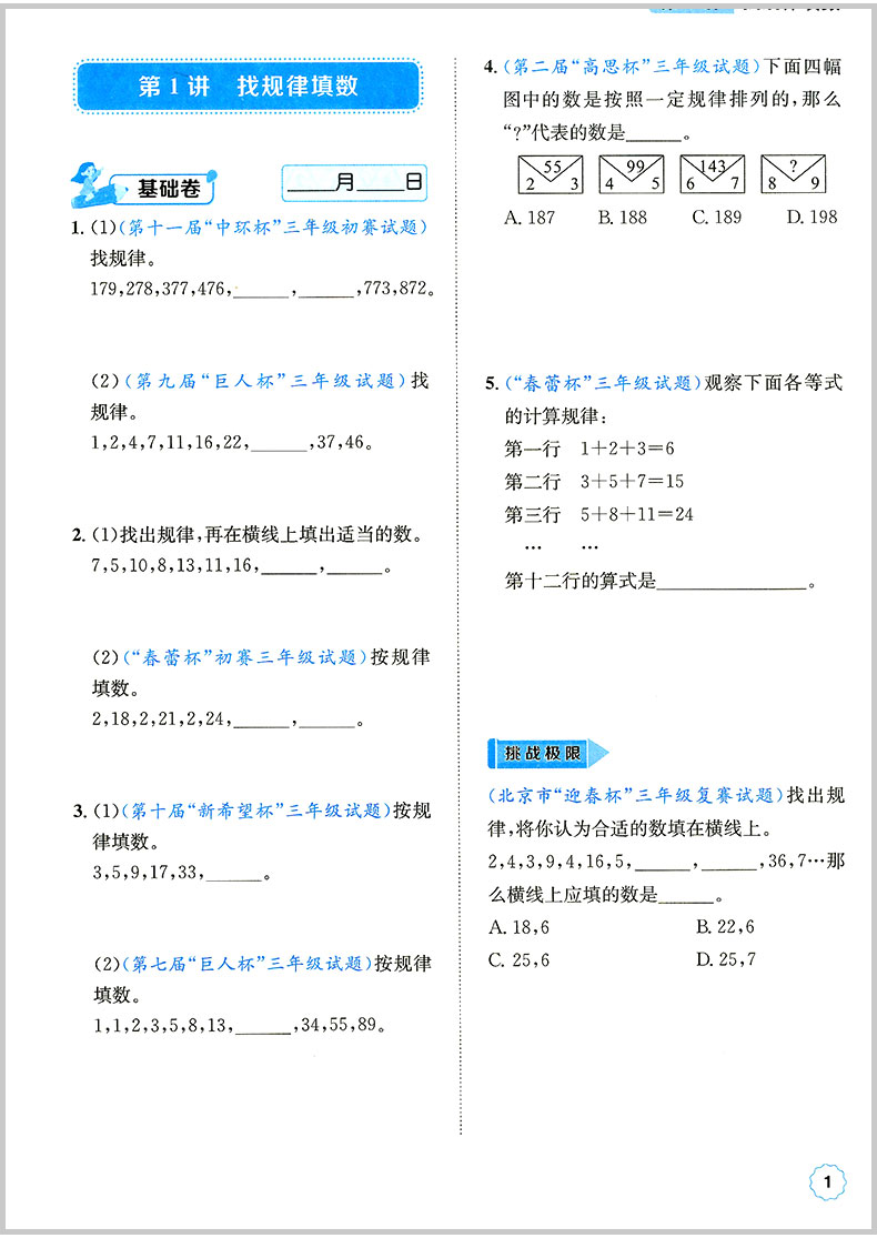 举一反三小学奥数创新思维三年级A版 共2本天天学每天一刻钟周周练每周半小时小学生3年级奥赛数学测试练习题思维训练崇文书局 B版