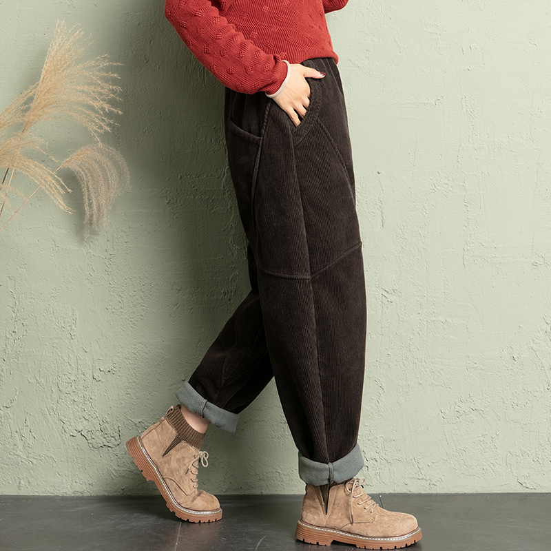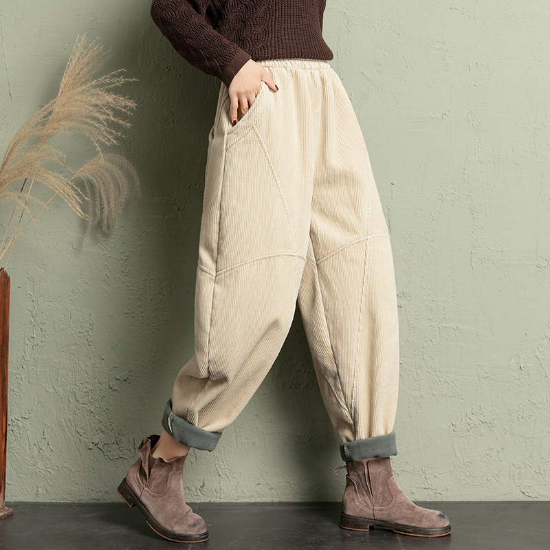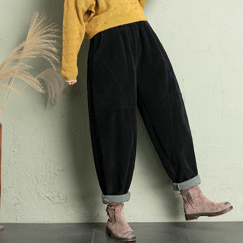 加厚条绒棉裤 加绒灯芯绒休闲裤 冬季 高腰哈伦长裤 外穿 子女宽松大码