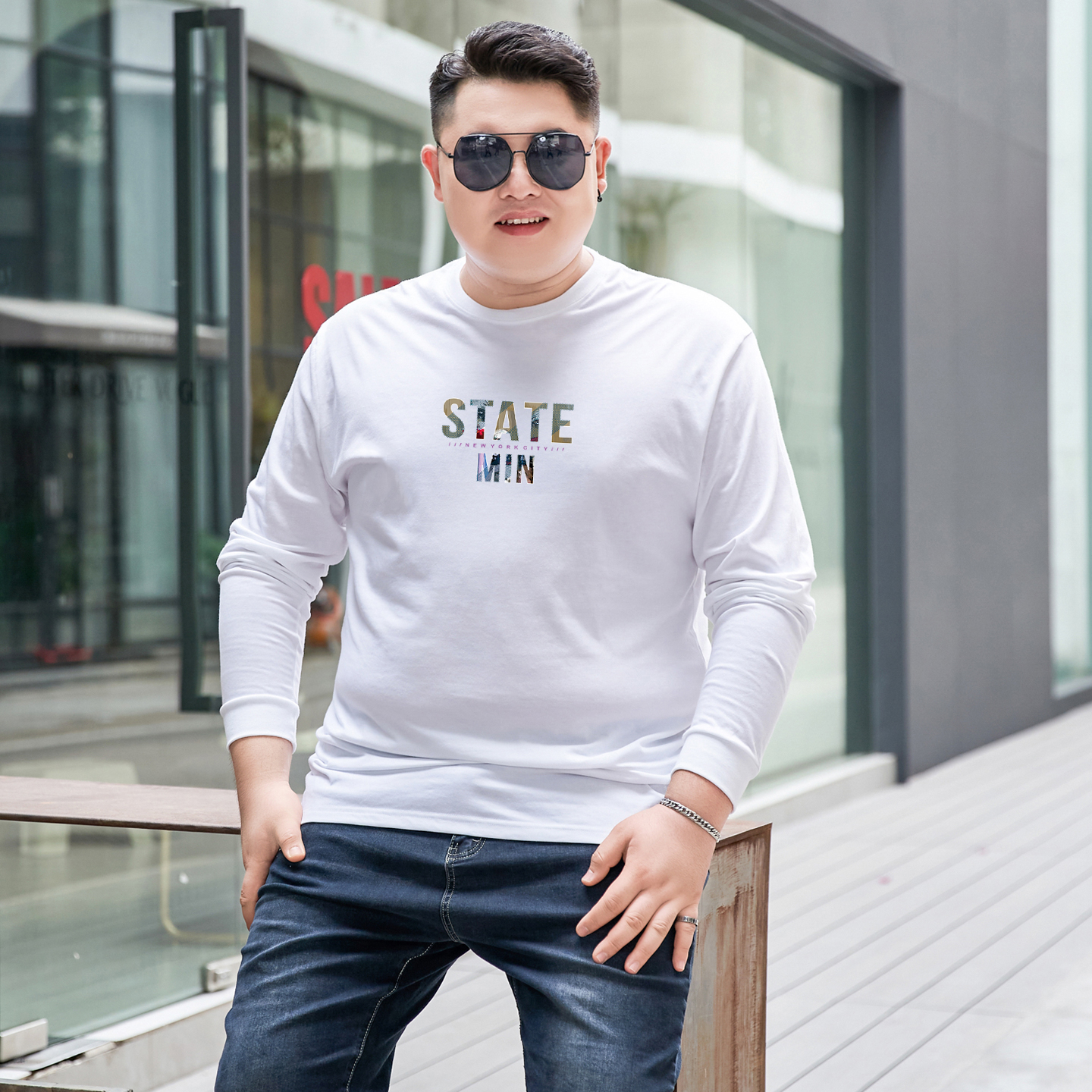 春秋T恤男长袖 运动休闲体恤 纯棉宽松加肥加大肥胖男人秋衣打底衫
