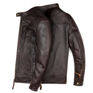 皮外套 复古做旧头层牛皮机车皮夹克休闲短款 断码 清仓真皮皮衣男士