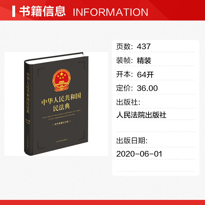 正版 中华人民共和国民法典有声典藏纪念版 中国民法典 版 2021年实施新版 硬壳精装 便携本64开小册子 64开