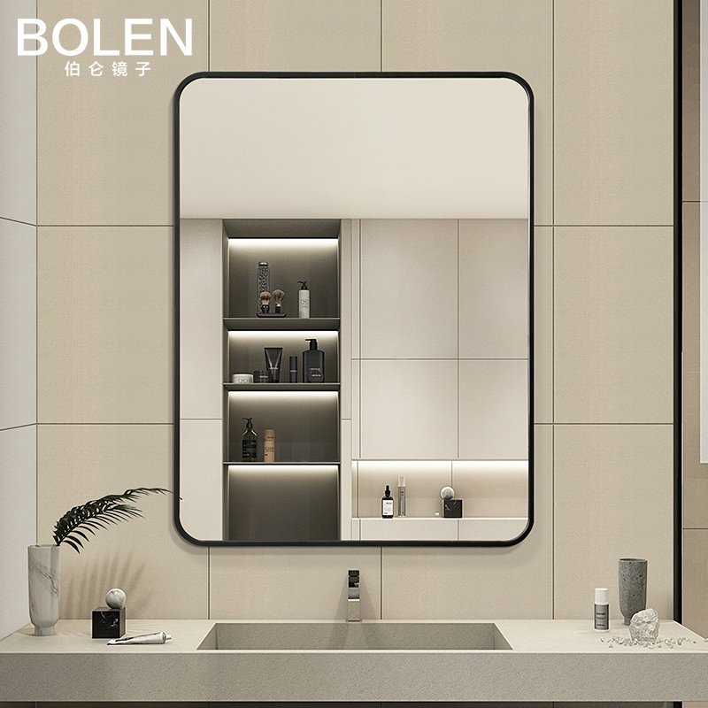 伯仑 镜子 圆角方形铝合金浴室镜洗漱台卫生间壁挂梳妆化妆挂墙式