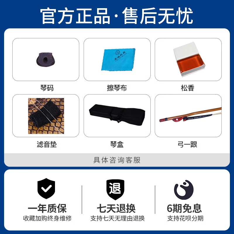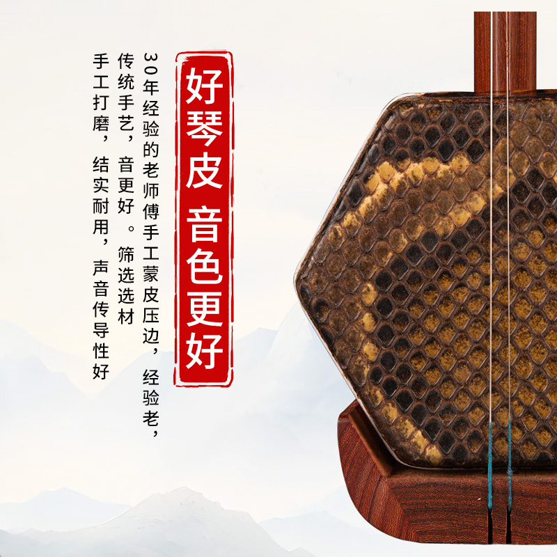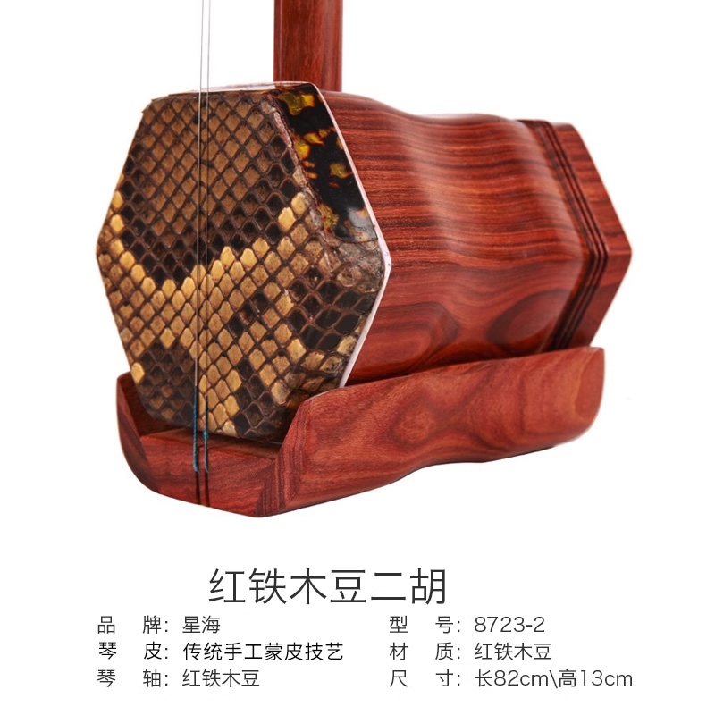 星海二胡民族乐器黑檀红木8D23儿童初学8726成人专业演奏级87215