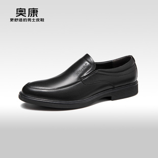 工作鞋 奥康男鞋 套脚舒适皮鞋 圆头商务休闲真皮软面低帮鞋 子 春秋季