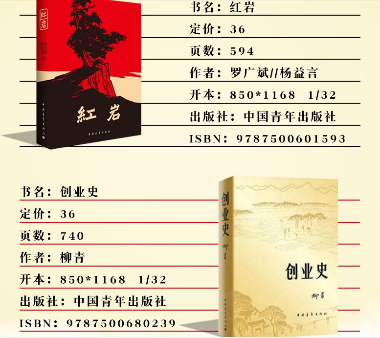 统编版 7年级下书籍中学小学书 小说 课外推荐 阅读书目中国青年出版 红色书籍 红色经典 爱国主义教育经典 部编版 红岩 社 创业史共2本