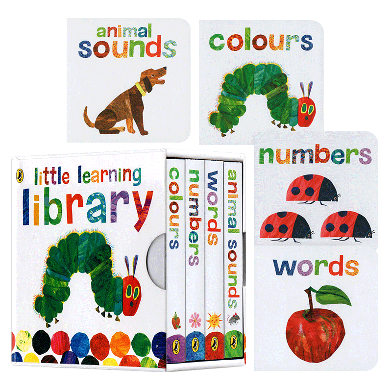 童书 4册认知纸板书 Very The 好饥饿 Caterpillar 礼盒装 words 艾瑞卡尔 英文原版 Carle Eric colours numbers Hungry 毛毛虫