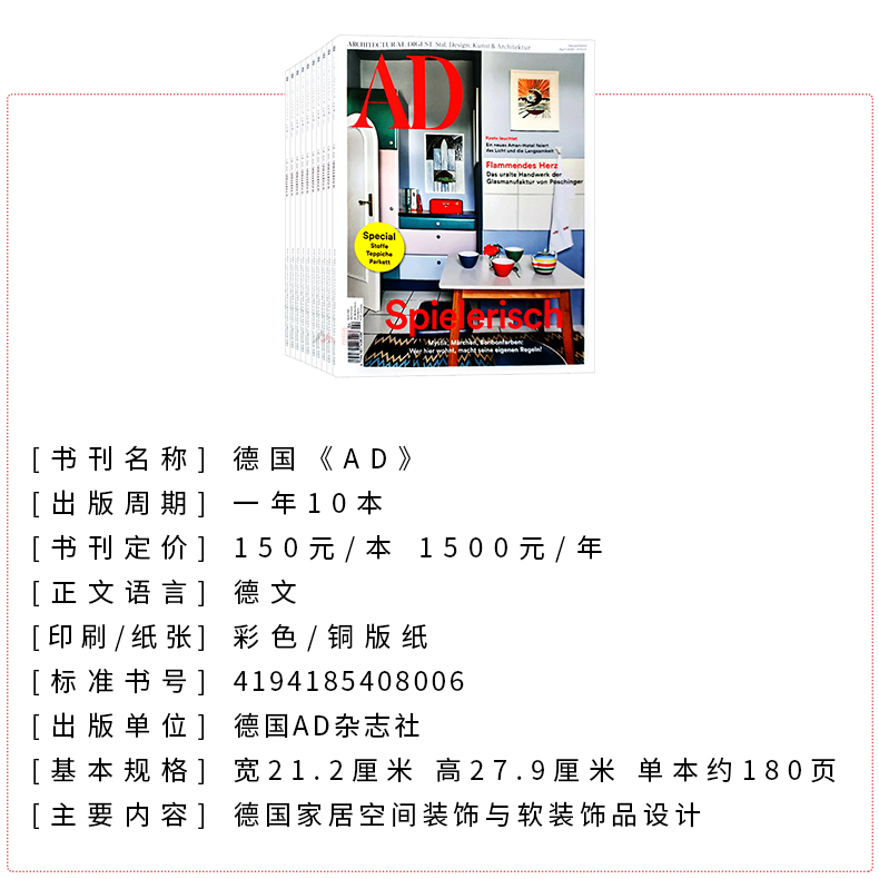 订购2026年 12月 饰装 全年10期 E25 修设计杂志 家居别墅豪宅 德国AD杂志 室内空间装