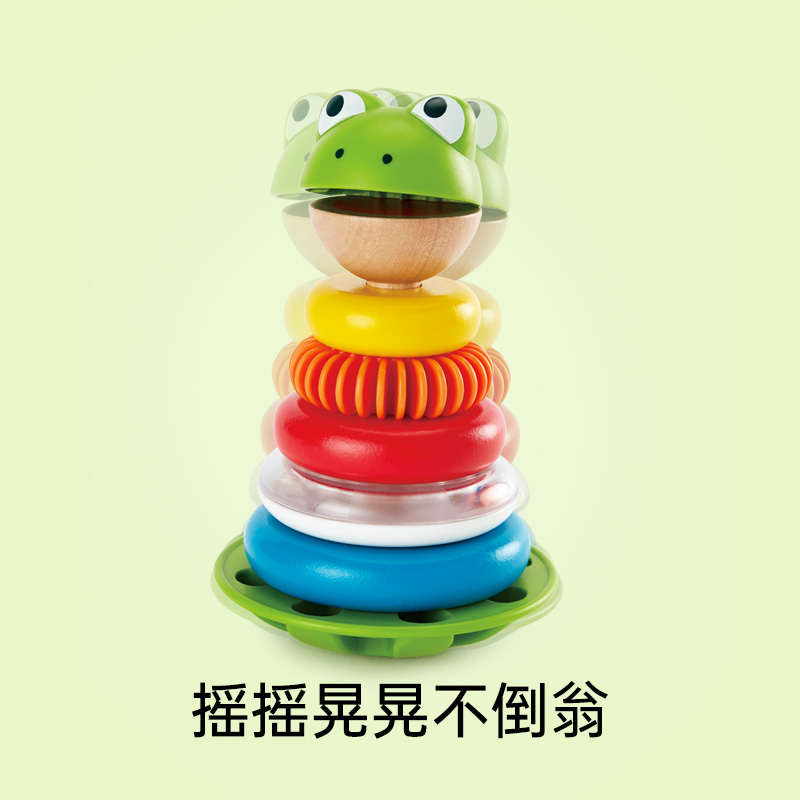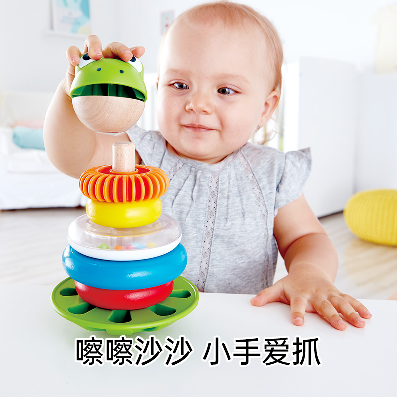 Hape青蛙花式 儿童益智力堆堆层层玩具 圆环堆塔彩虹套圈叠叠乐1岁