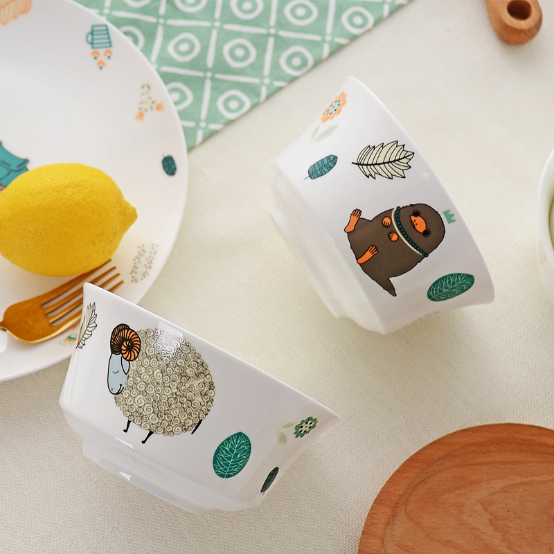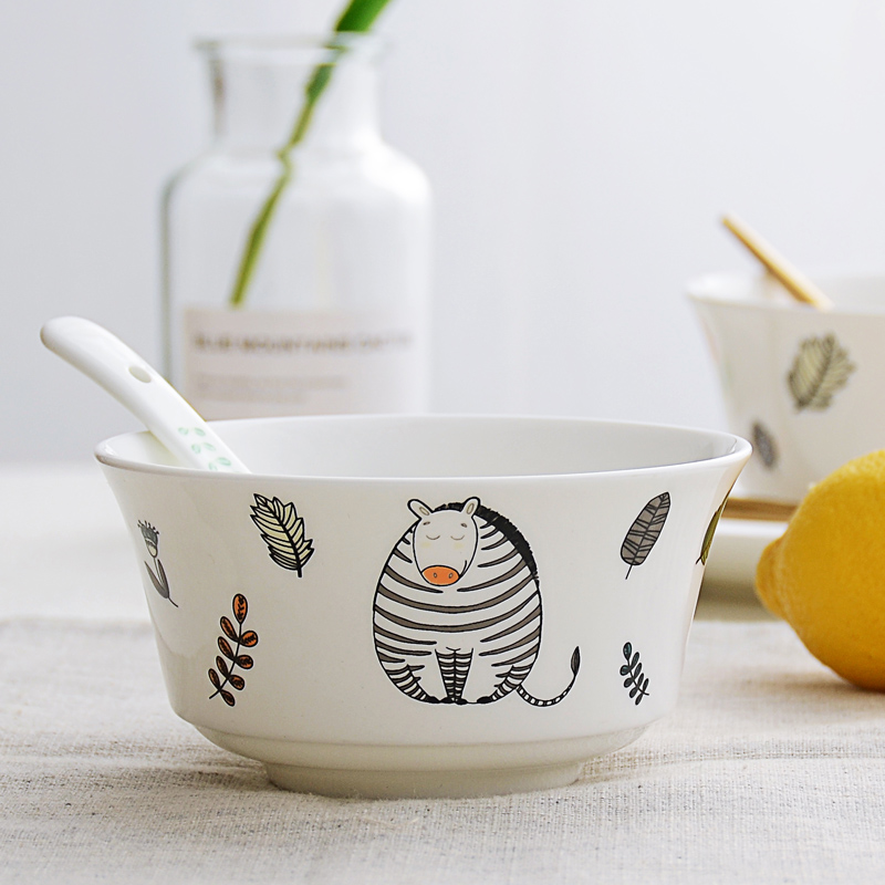 5英寸米饭碗大号卡通碗骨瓷碗儿童餐具陶瓷碗家用个性 小面碗套装