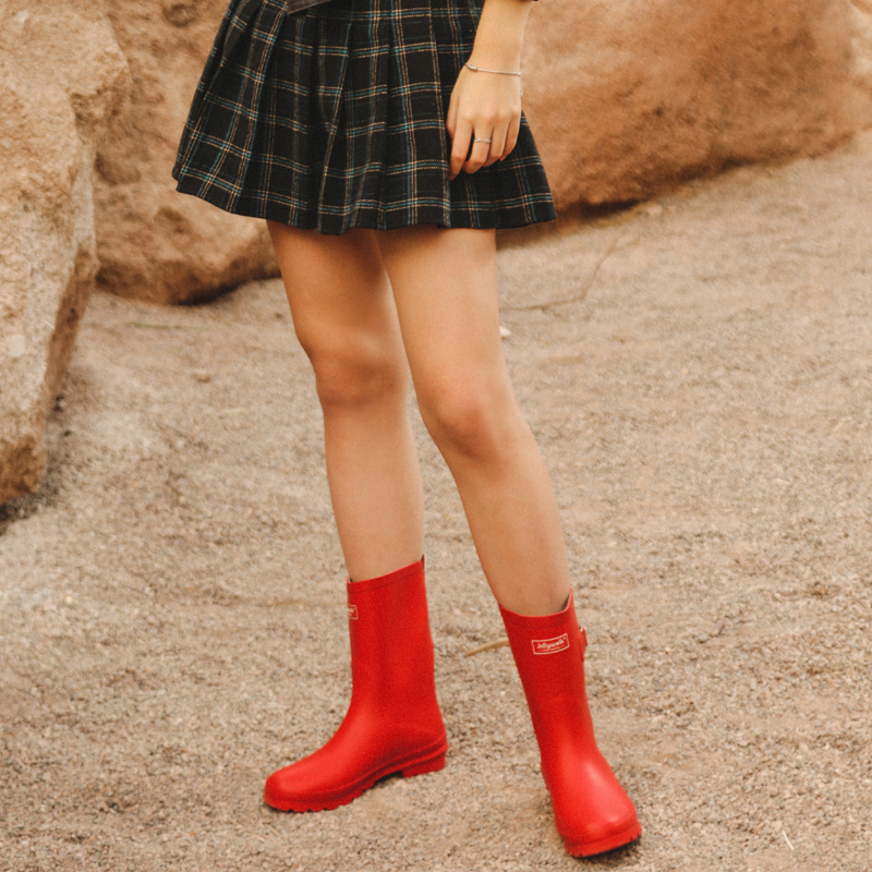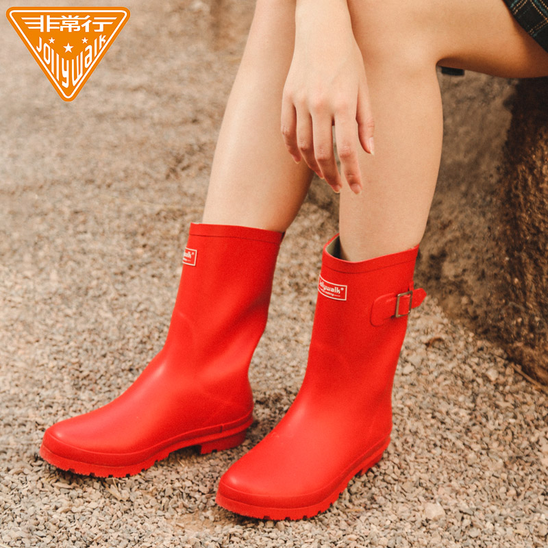 防水防滑长筒靴涉水鞋 雨靴女黑色时尚 女经典 户外鞋 高颜值红色雨鞋