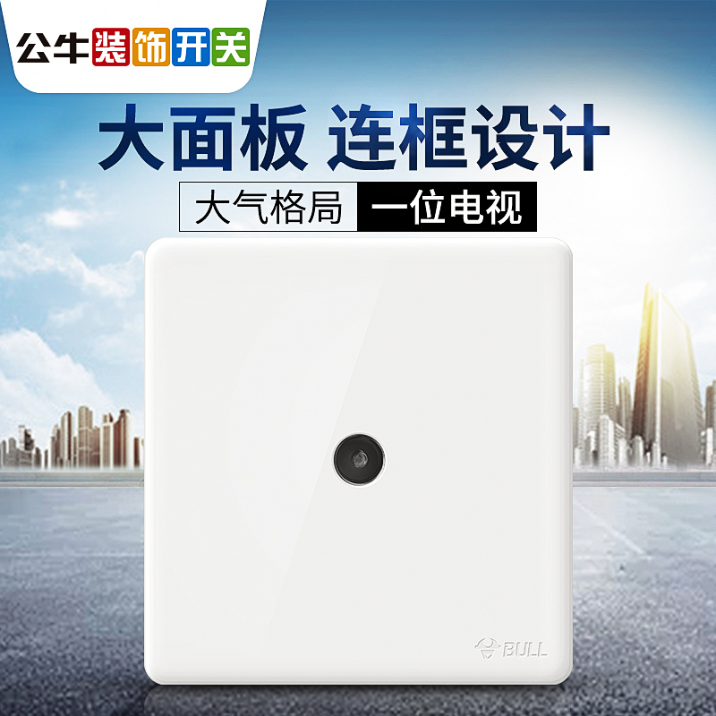 公牛开关面板家用墙壁86型专用一位有线闭路电视插座面板G28白