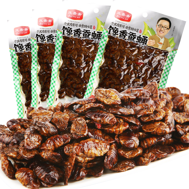 庞香斋蚕蛹即食五香新鲜蚕蛹醇香蒸煮150g 5袋微辣非油炸山东特产