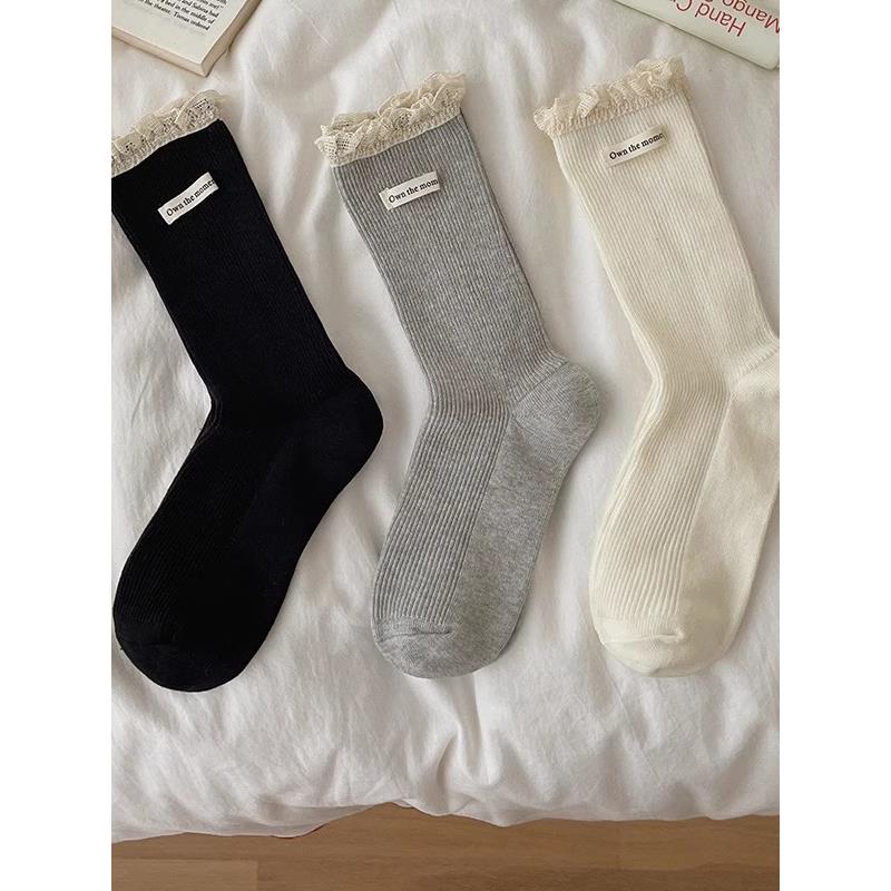 10A抗菌白色袜子女春秋纯棉中筒袜防臭堆堆无骨月子长筒袜秋冬季
