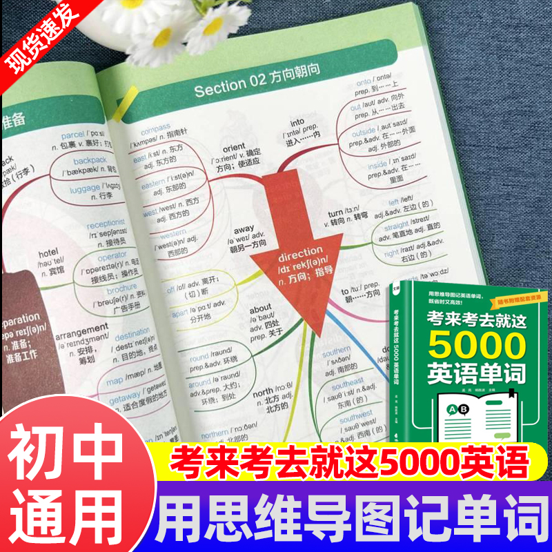 考来考去就这5000英语单词初中高中通用考试单词王学生实用巧记好背英语单词记背神器思维导图秒记单词语法大全一本通中考高考必背
