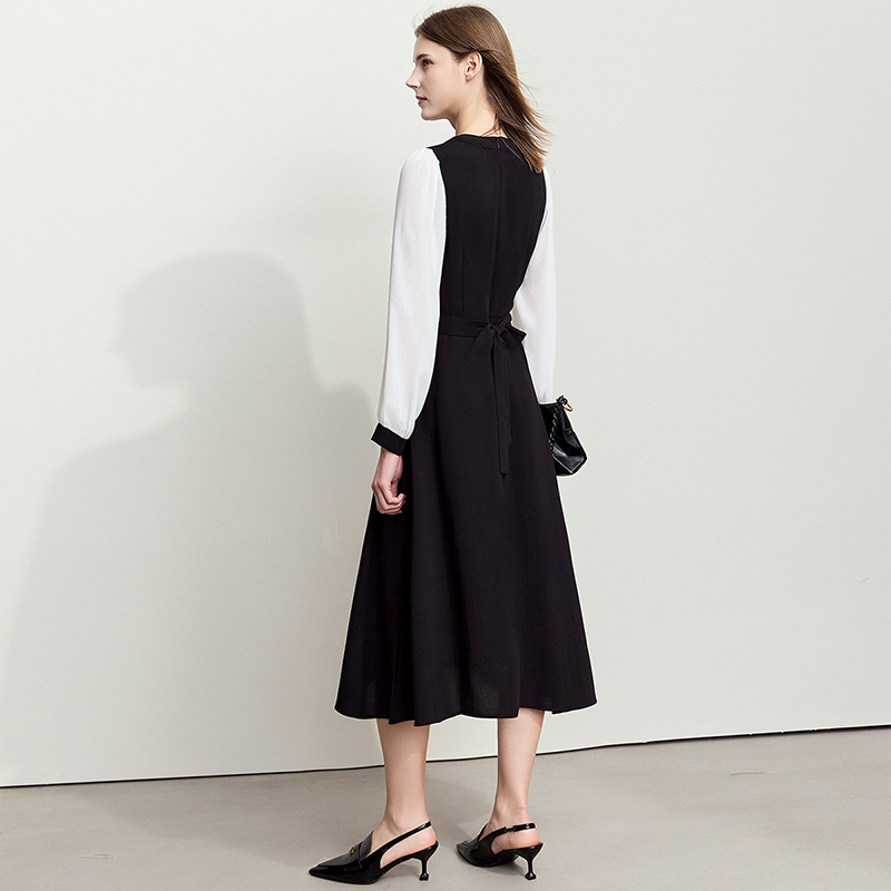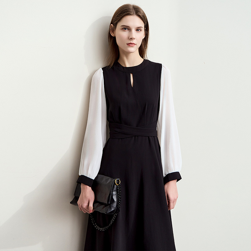 法式 连衣裙秋秋长款 优雅 收腰绑带雪纺长袖 2025秋秋泡泡袖 AMII