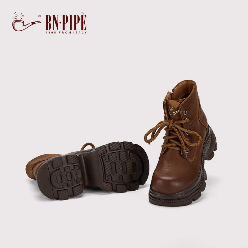 管短靴 棕色复古美拉德厚底堆堆靴子裤 回力马丁靴女2025秋冬季 新款