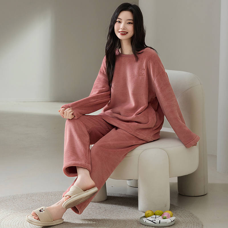 男士 家居服套装 中厚抗静电薄绒开衫 红豆暖暖绒海岛绒睡衣女秋冬款
