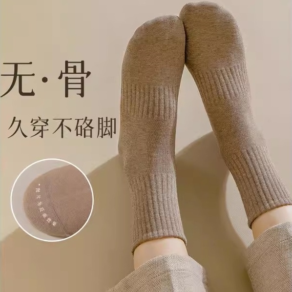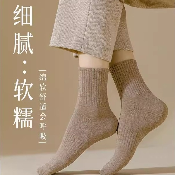 袜子女款 秋冬中筒袜黑色棉袜女士秋冬防臭透气美拉德无骨月子长袜