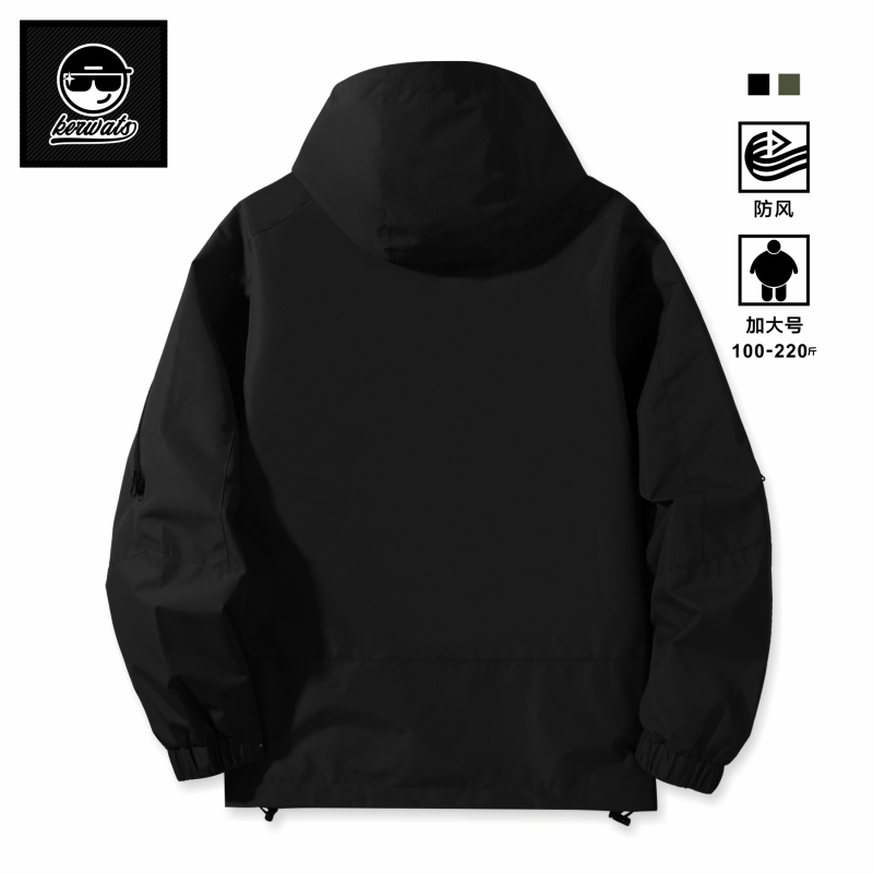 361三防外套2025秋季 连帽立领风衣 户外防泼水梭织运动夹克男士