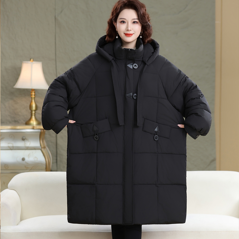 棉袄胖妈妈时尚 长款 加肥棉衣中老年宽松棉服厚外套 女士冬装 特大码