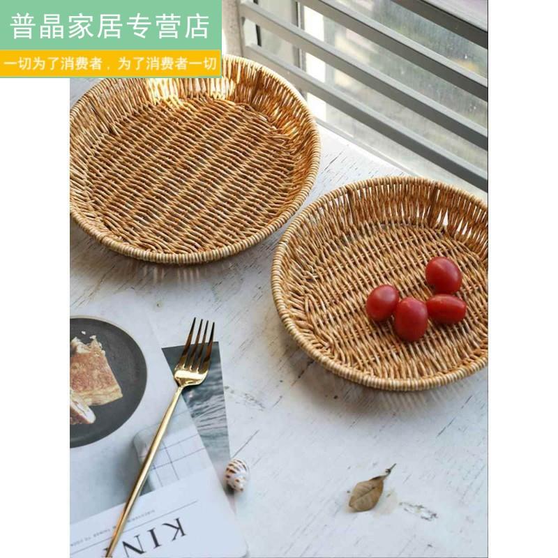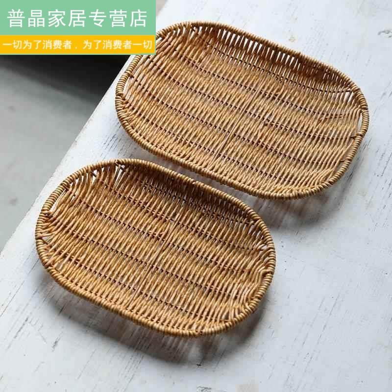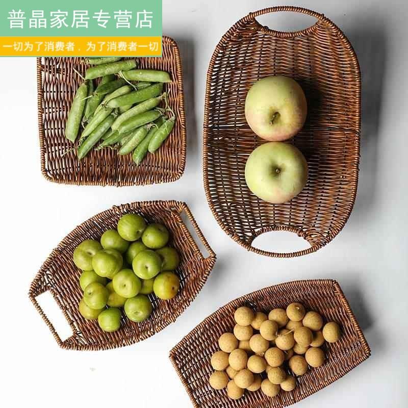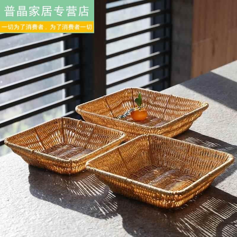小吃篮子藤编竹编织薯条盘水果篮长方形客厅家用油炸竹篮托盘商用