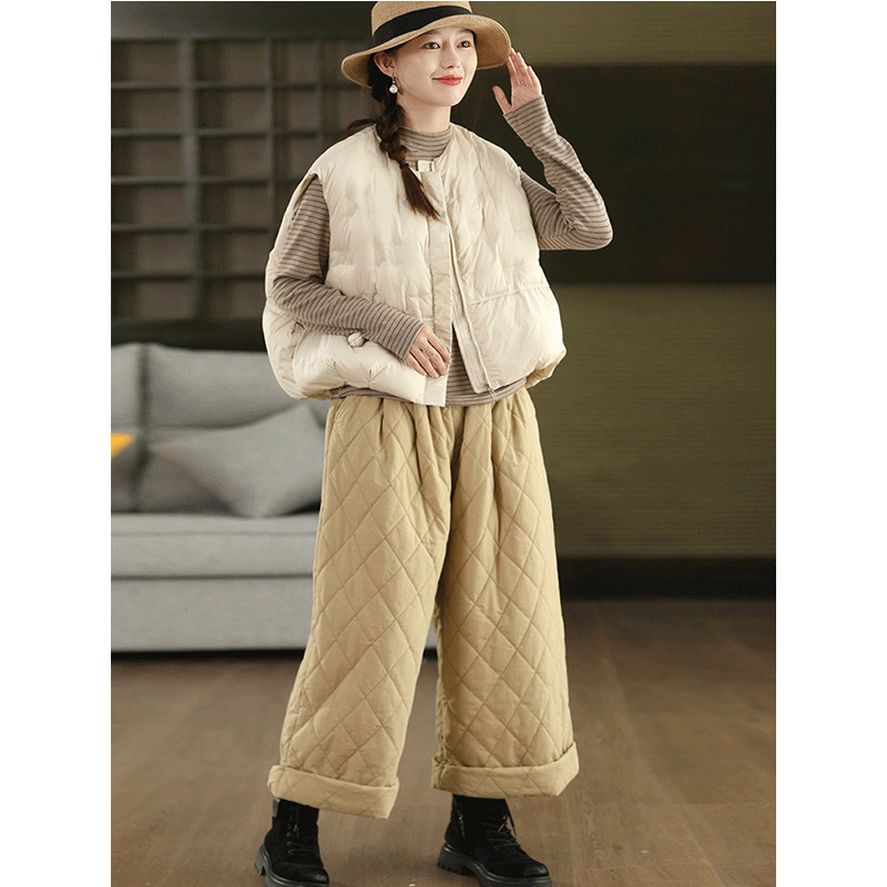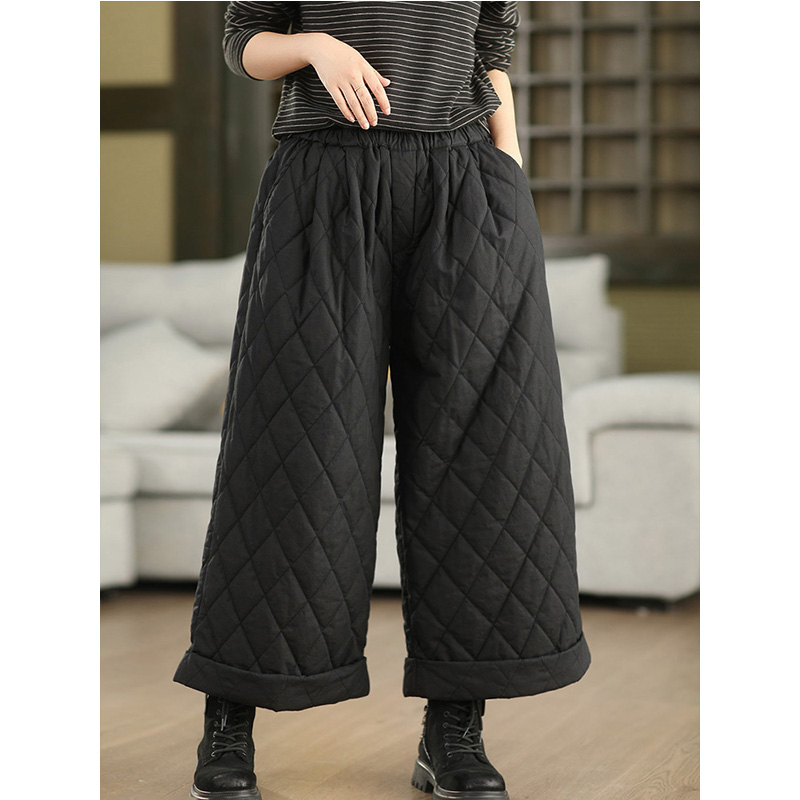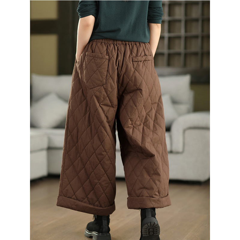 气质松紧腰保暖九分裤 腔调文艺宽松菱格阔腿棉裤 新款 柒白2025冬季