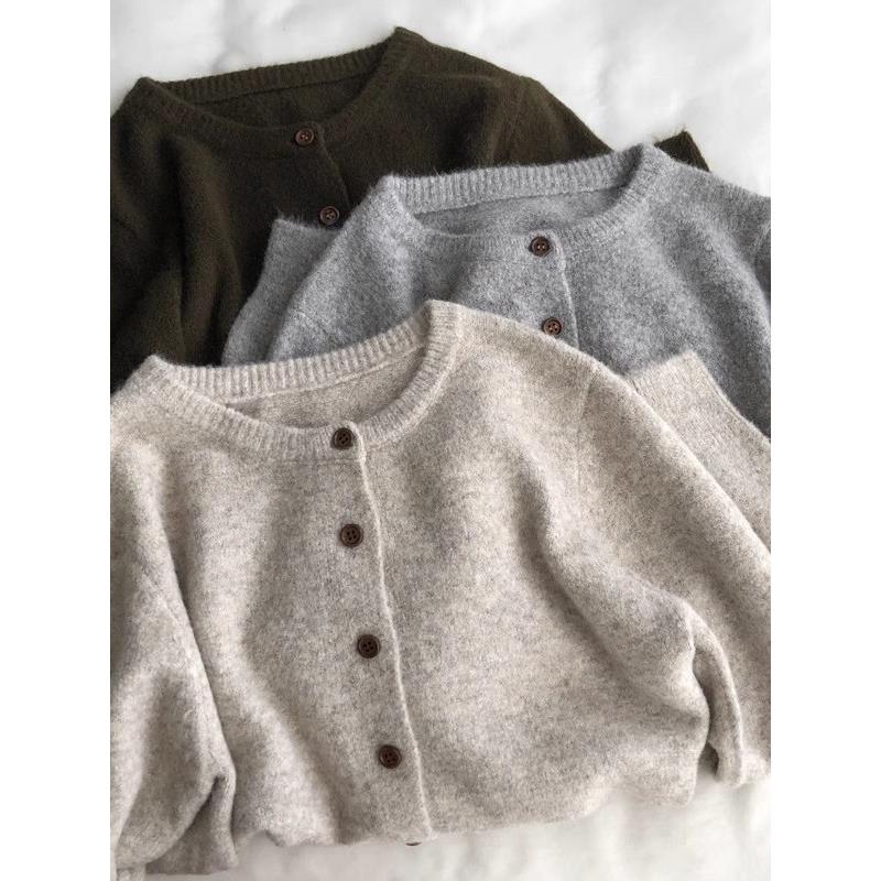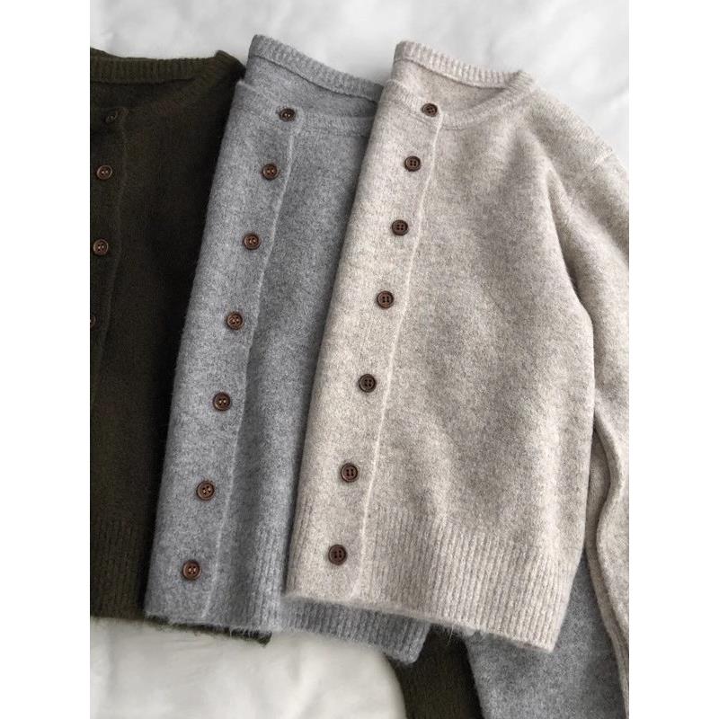 慵懒软糯针织开衫 高级感覆古圆领毛衣外套女2025春秋新款 简约短款