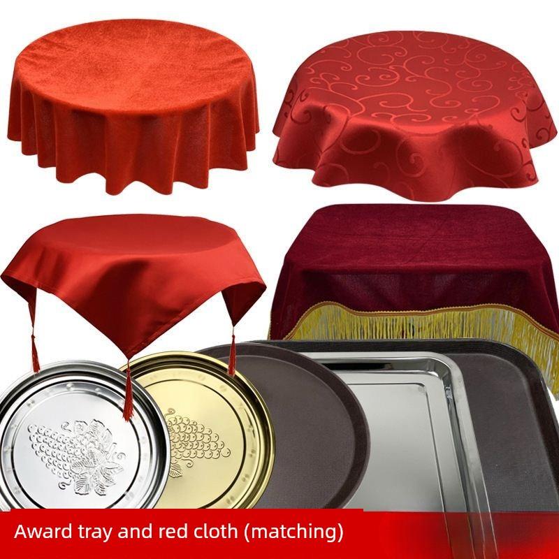 高端颁奖托盘和红布开幕剪彩礼仪用品托盘红布包装 红天鹅绒托盘布