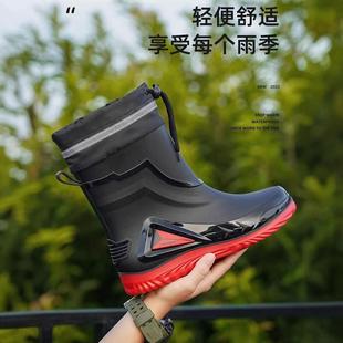 水鞋 防滑耐磨男士 冬天加绒防水中筒外卖骑手专用靴 男款 德国雨鞋