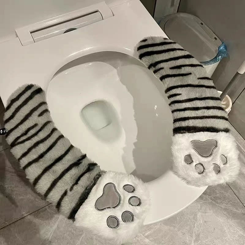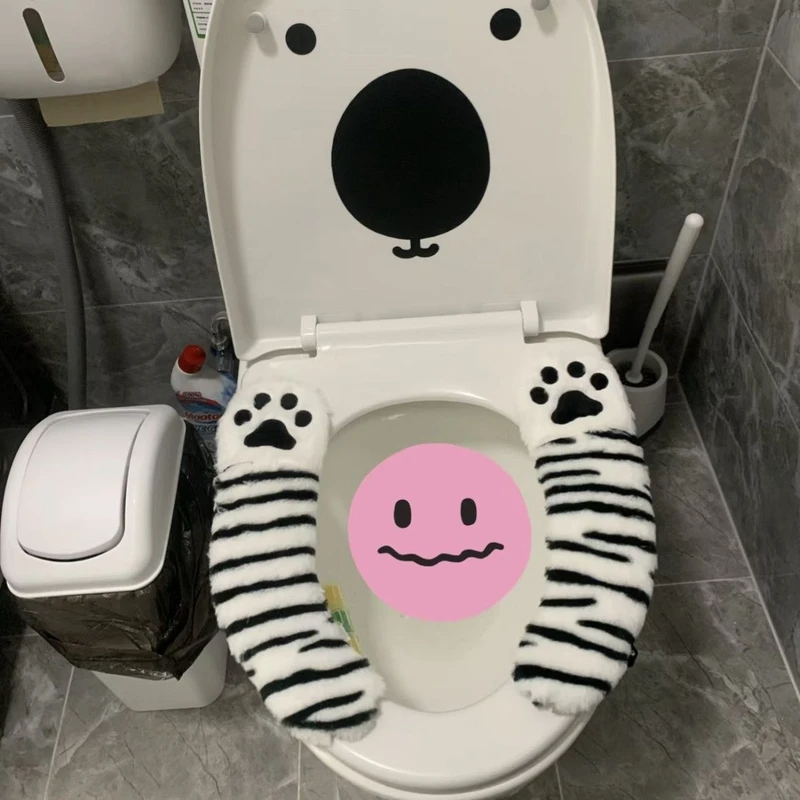 日系可爱猫爪马桶垫家用粘贴式 毛绒厕所坐垫坐便套 坐便器垫圈冬季