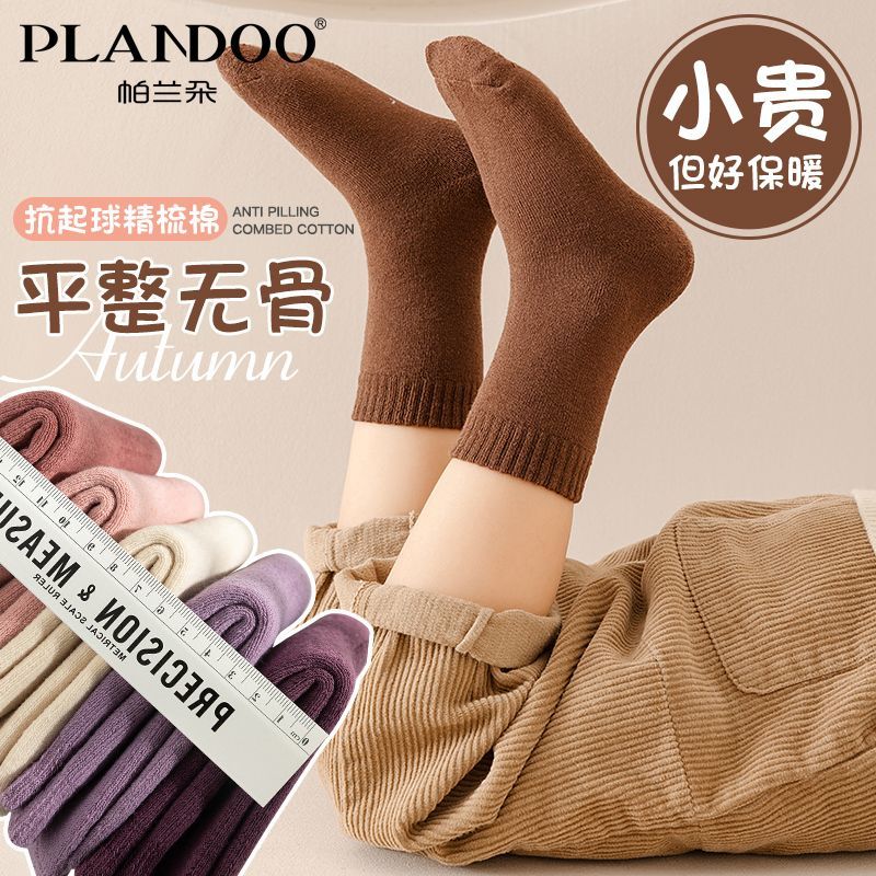 帕兰朵加厚毛圈保暖中筒童袜简约纯色百搭舒适亲肤男女中大童袜子