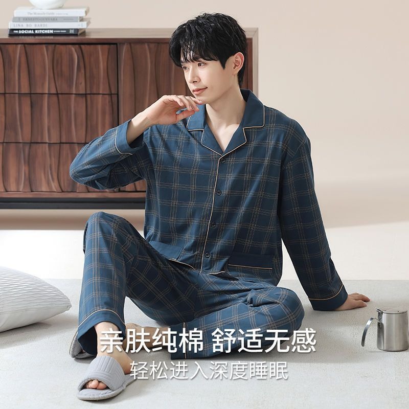 睡衣男士 大码 纯棉春秋男生套装 春季 休闲家居服夏 青年男款 芬腾长袖
