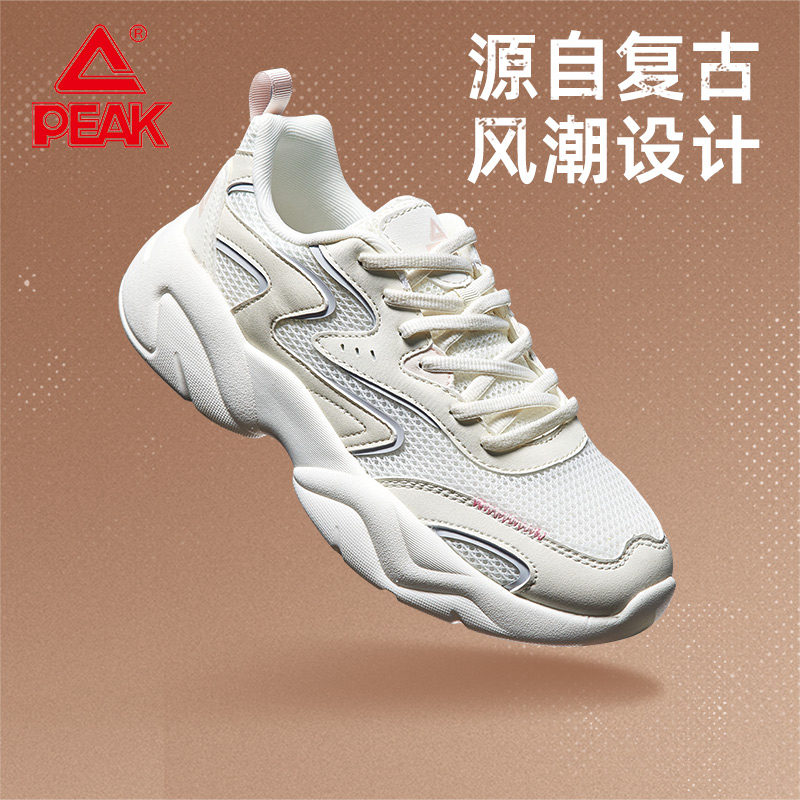 老爹鞋 匹克女鞋 复古时尚 纯色百搭运动鞋 子 轻便透气软底增高休闲鞋