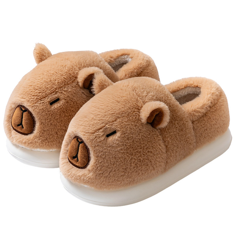 室内家居月子包跟保暖加绒毛毛棉鞋 冬季 女2025新款 卡皮巴拉棉拖鞋