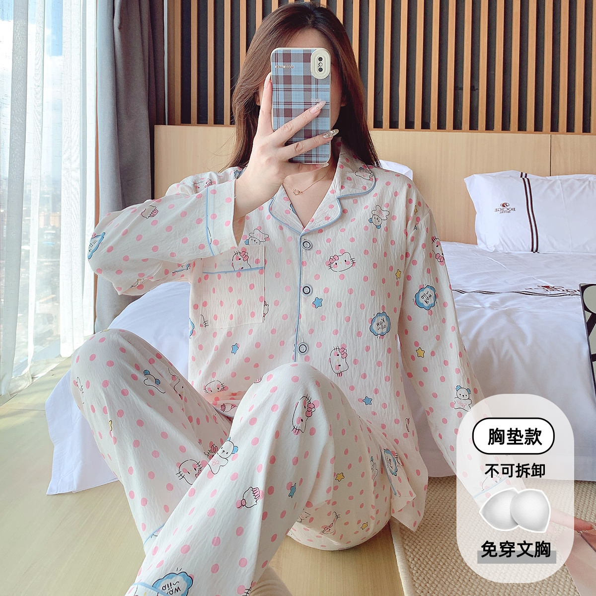 云朵棉薄款 2025爆款 带胸垫春秋季 长裤 甜美休闲家居服 睡衣女长袖